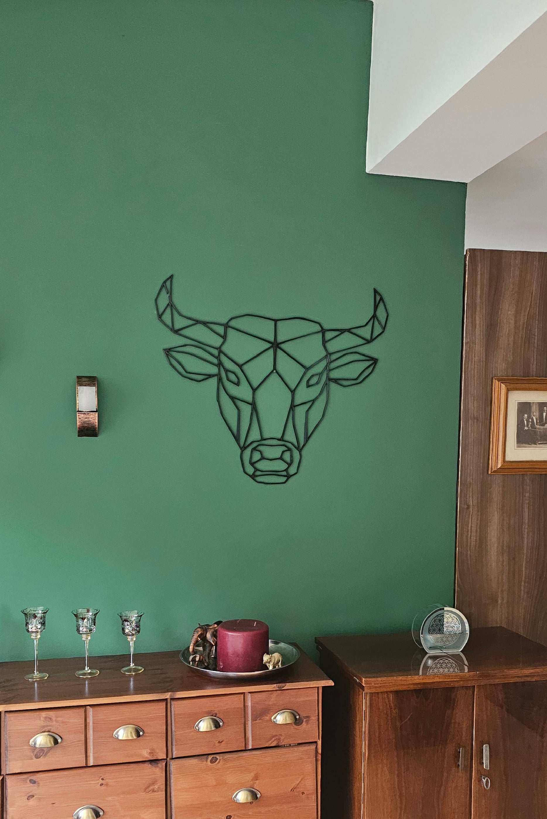 Lass die tiefe und ruhige Kraft des Büffels in dein Zuhause einziehen und genieße die tägliche Erinnerung an deine Beständigkeit und Geduld.